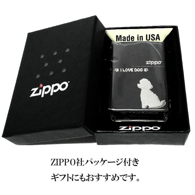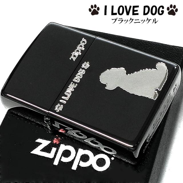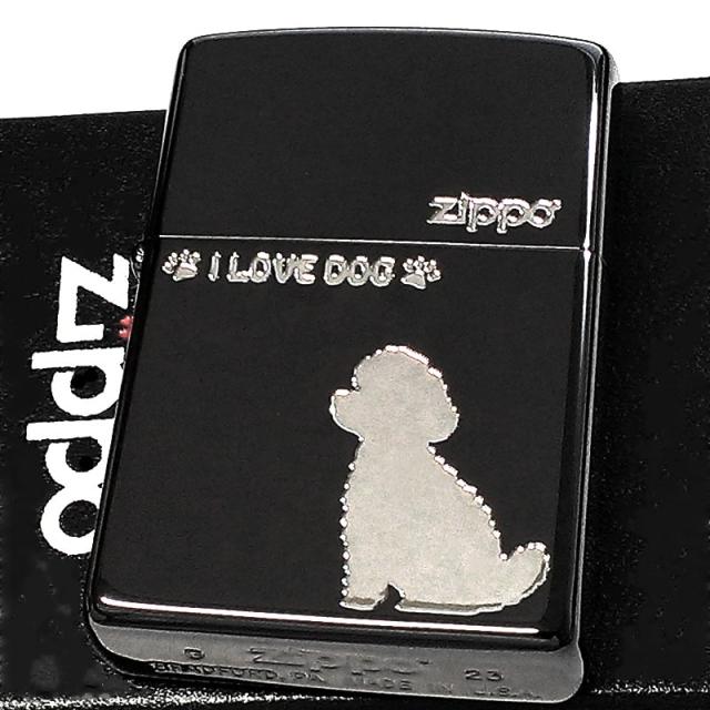 ZIPPO ライター トイプードル かわいい I LOVE DOG ジッポ 犬 ブラックニッケル 彫刻 おしゃれ 銀差し わんちゃん 女性 黒
