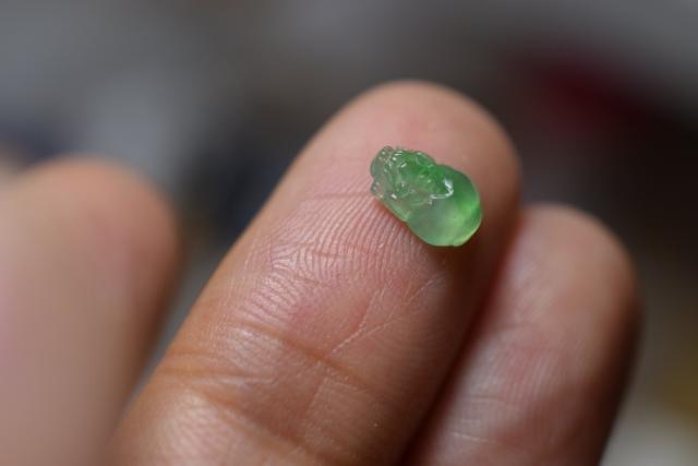 ミニ 貔貅 宝石質 氷種 若緑 ミャンマー産天然 A貨 本翡翠 ルース( 硬玉 、ジェダイト、含浸処理なし