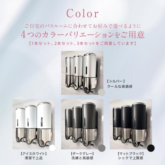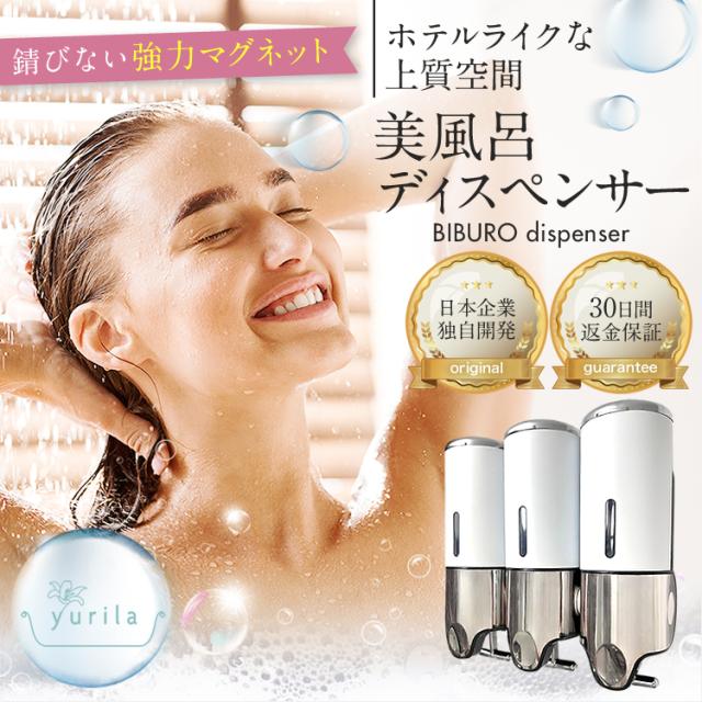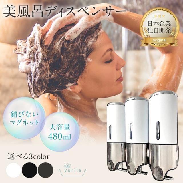 【最後まで使える独自設計】 シャンプーボトル シャンプーディスペンサー マグネット マグネットディスペンサー シャンプー ディスペンサー 磁石 大容量 強力 壁掛け おしゃれ 簡単レバー方式 詰め替えボトル yurila 美風呂ディスペンサー (3本セット)