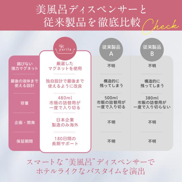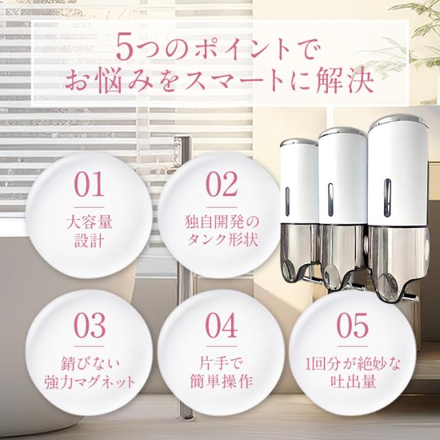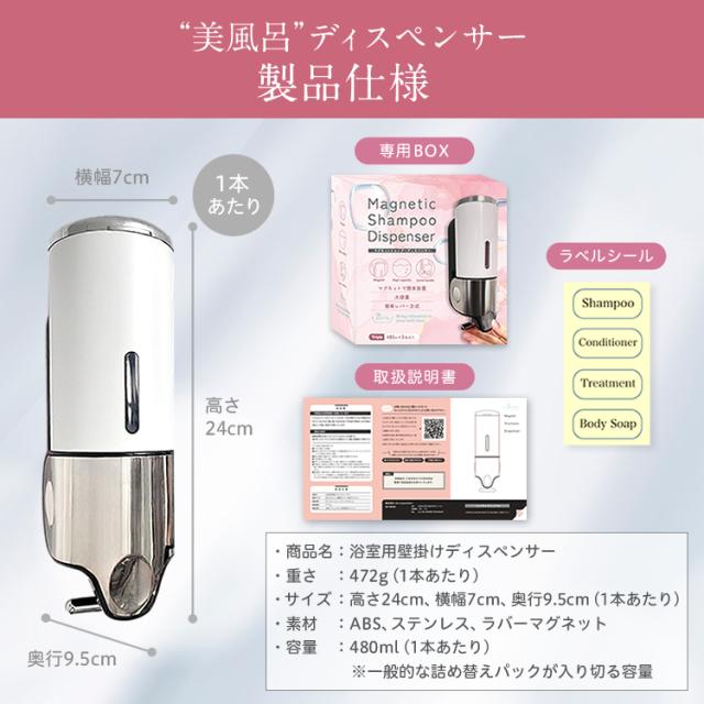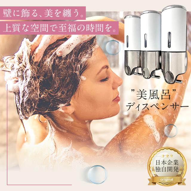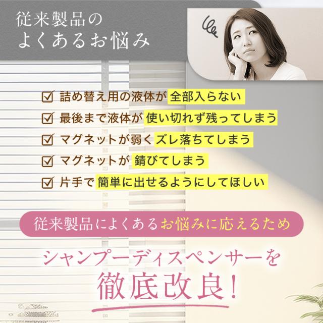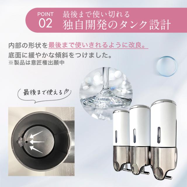 当店独自の形状により、バスルームを"スッキリ彩る"シャンプーディスペンサー