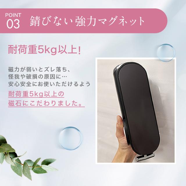 - 壁掛けにすることで浴室がとってもスッキリみえます。磁力はしっかりあり、下がってくることはありません。初めてのレバー式ですが、意外と使いやすいです。最後まで使い切れるため、シャンプーの種類を変えても混ざ...
