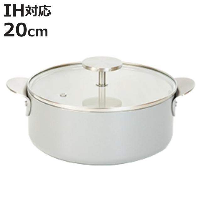 両手鍋 20cm IH対応 内面セラミック加工 テーブルポット ( ガス火対応 両手なべ セラミック加工 ガラス蓋付き 20センチ 調理器具 小鍋 鍋 なべ フタ付き アルミ製 アルミ鍋 おしゃれ )