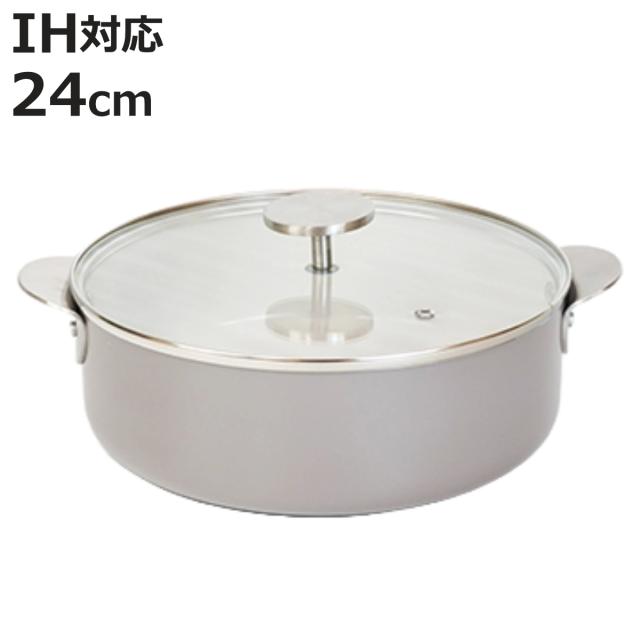 両手鍋 24cm IH対応 内面セラミック加工 テーブルポット ( ガス火対応 両手なべ セラミック加工 ガラス蓋付き 24センチ 調理器具 鍋 なべ フタ付き アルミ製 アルミ鍋 おしゃれ )