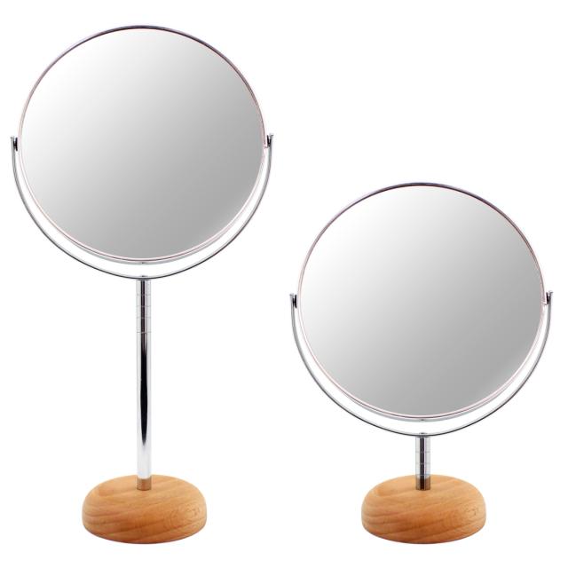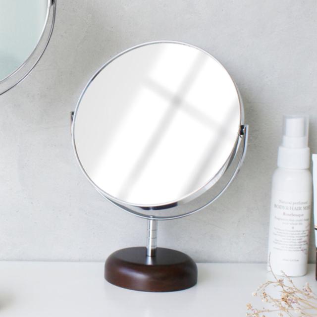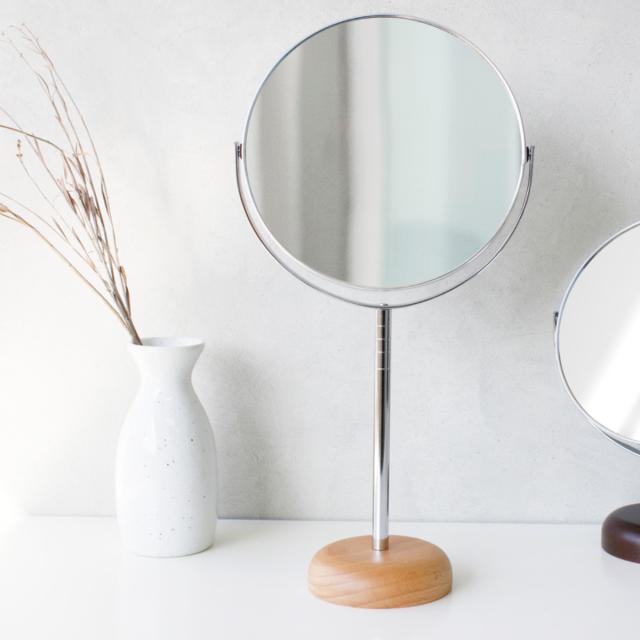 贅沢に天然木を使用した両面鏡、7倍の拡大鏡でしっかり見える