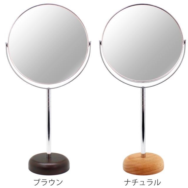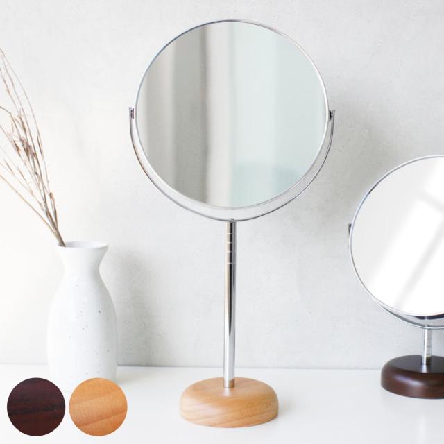 スタンドミラー 片面拡大鏡 7倍率 ロングタイプ ウッドべ—ス アコウスティック ( 両面 ミラー 鏡 卓上 化粧鏡 メイクミラー 角度調節 丸 ラウンド 天然木 日本製 北欧 ナチュラル モダン シンプル )