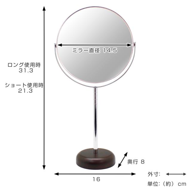 | サイズ | 約 幅16×奥行8×高さ21.3/31.3(cm) ミラー:直径14.5(cm) |