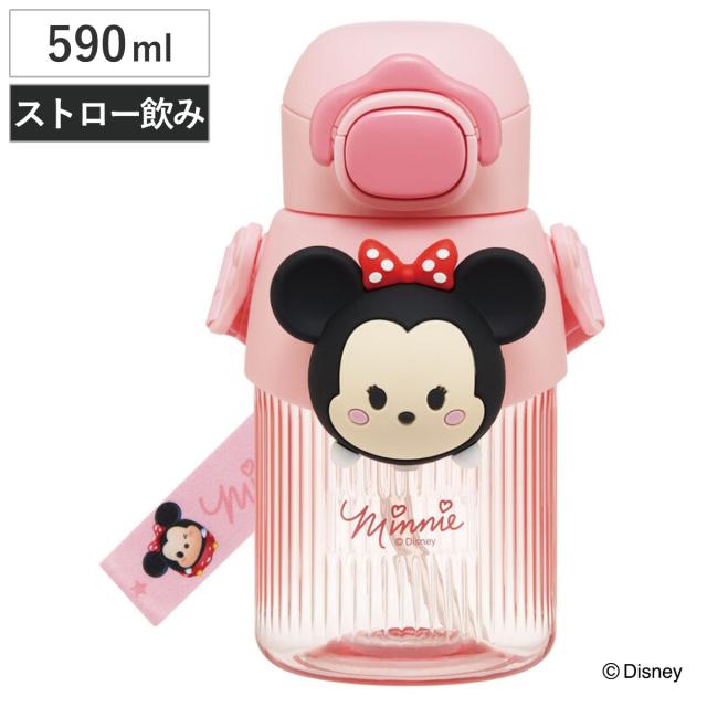 水筒 590ml マスコットストローボトル ツムツムミニー ( ミニー ストロー付ボトル ストローボトル クリアボトル ワンプッシュ ワンタッチ ストロータイプ 子供 子供用水筒 クリア ショルダーベルト 幼稚園 保育園 キッズ )