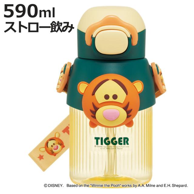 水筒 590ml マスコットストローボトル ツムツムティガー ( ティガー ストロー付ボトル ストローボトル クリアボトル ワンプッシュ ワンタッチ ストロータイプ 子供 子供用水筒 クリア ショルダーベルト 幼稚園 保育園 キッズ )