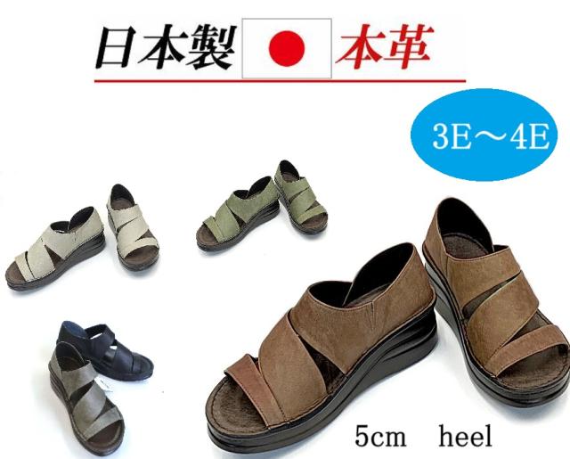 日本製 本革 サンダル サイドゴア オープントゥ コンフォートシューズ 厚底 レザー幅広 3e 4e 外反母趾 ウエッジ 5cm 歩きやすい 履きやすい 疲れにくい 小さいサイズ 大きいサイズ