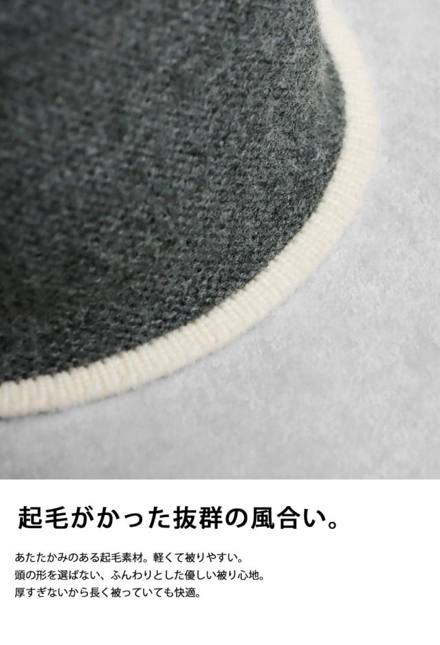 起毛がかった素材感と編地で暖かく、これからの季節にピッタリなハット。