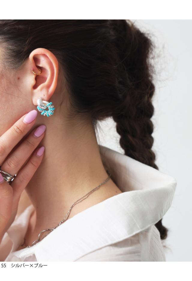 aj-01801 アレルギー対応 ニッケルフリー 金属アレルギー 低アレルギー フープピアス ビジューピアス 上品 シルバー ゴールド ビーズアクセサリー 揺れる アクセ 両耳用 オケージョン