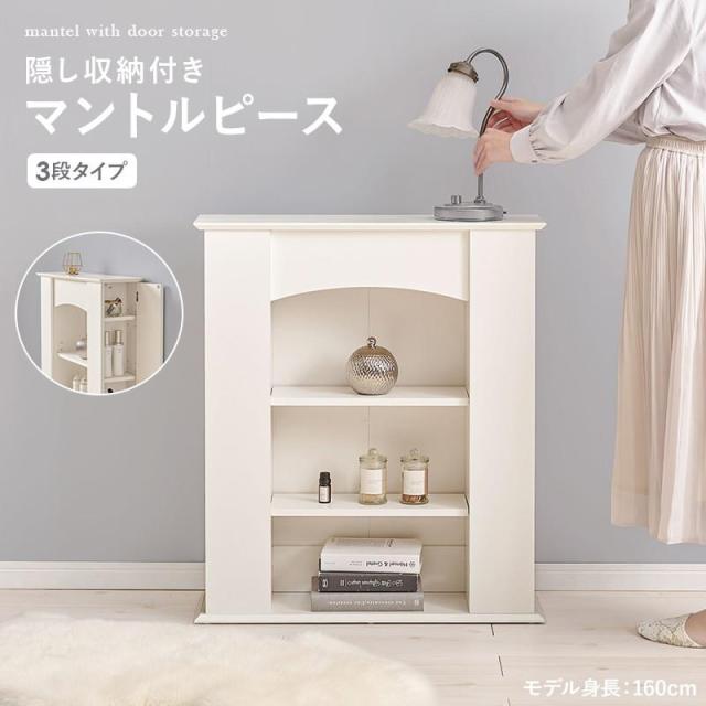 マントルピース 暖炉風 3段 幅70cm ディスプレイラック 飾り棚 収納棚 サイド部 隠し扉収納 寝室 玄関 リビング キャビネット