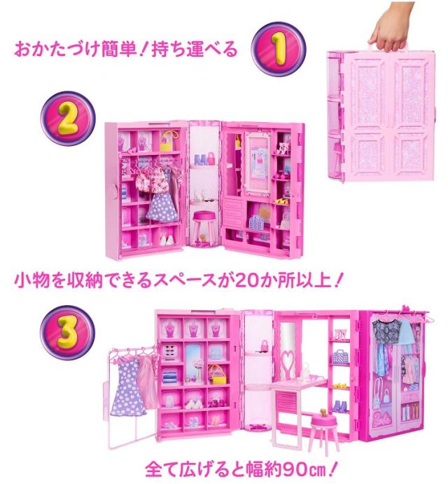 ●バービーのドリームクローゼットが登場!広げると約90cmと大きく収納スペースも抜群!