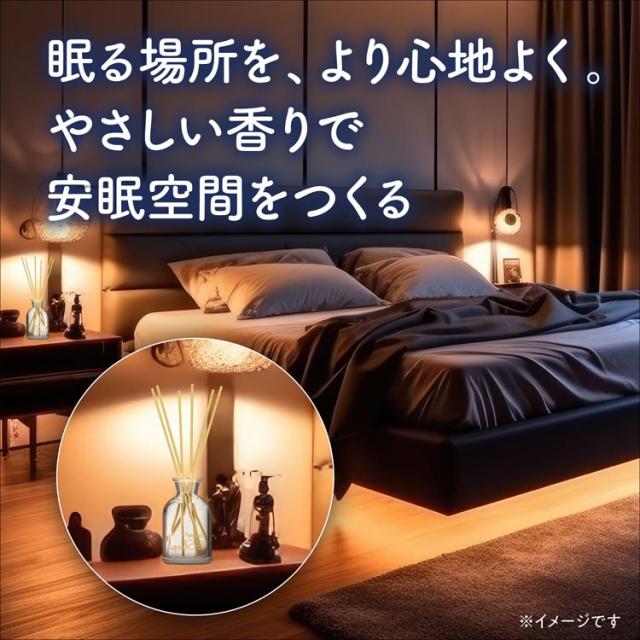 ●眠りを考えた香料を配合した、心地よいやさしい香りで安眠空間をつくる機能性芳香剤です。