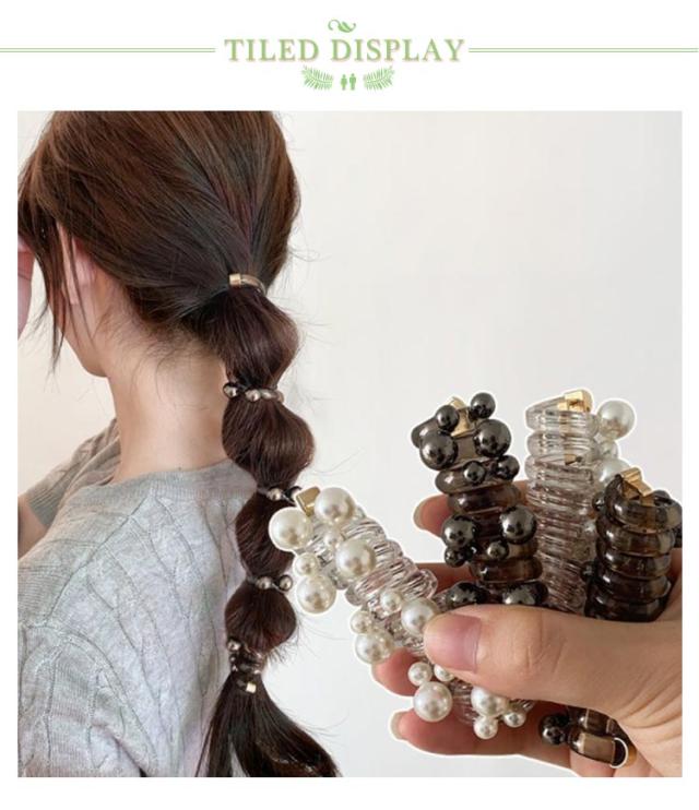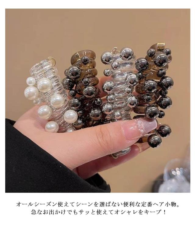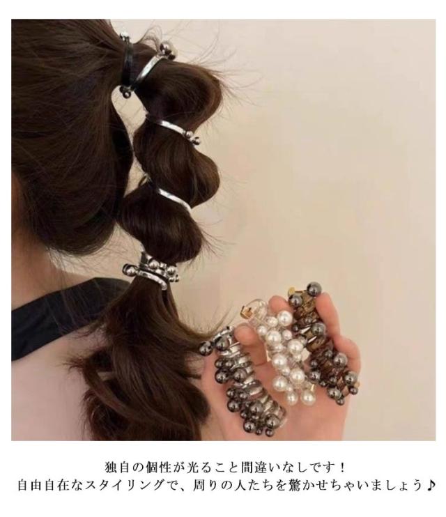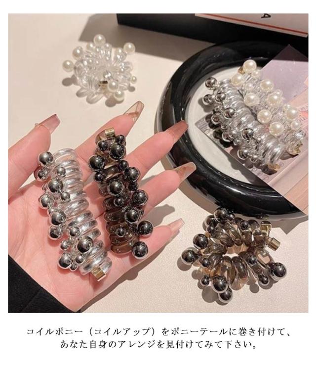 3個セット コイルポニー コイルアップ ワイヤーポニー ヘアアクセサリー ヘアアクセ パール ヘアゴム 電話コード 長め ロング まとめ髪 ポニーフック タイトポニー 髪飾り ヘアアクセサリー かわいい お洒落 ファッション小物