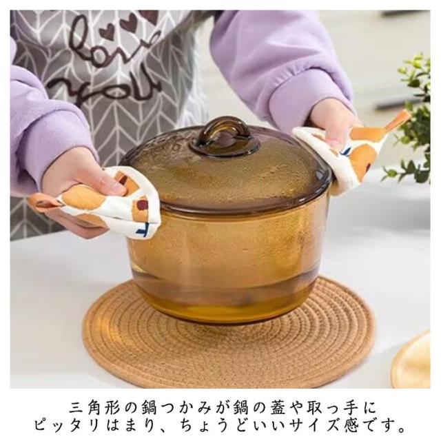 三角鍋つかみ 2個セット 三角鍋掴み 鍋つかみ 耐熱ミトン 北欧風 キッチン雑貨 お洒落 可愛い 滑り止め 鍋蓋 やけど防止 厚手 両手鍋 クッキング用 調理用 左右兼用 キッチン用品 収納便利 送料無料