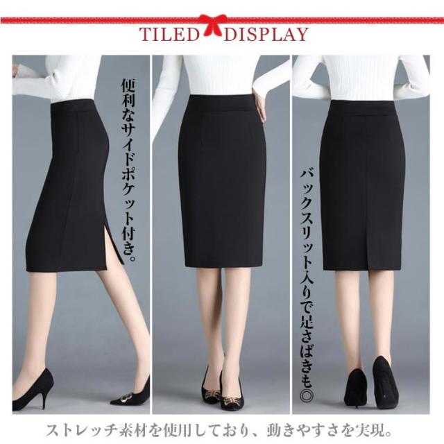 事務服 スカート オフィス タイトスカート ウェストゴム レディース ボトムス スーツ ストレッチ 後ろスリット 細身 スリム 大きいサイズ オフィス フォーマル 事務員 受付 制服 OL 女性 事務 ビジネス 通勤 リクルート 就活