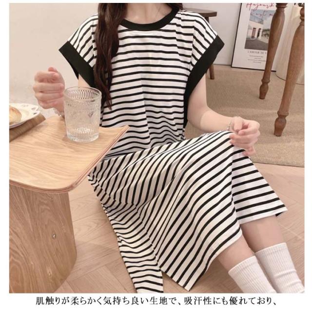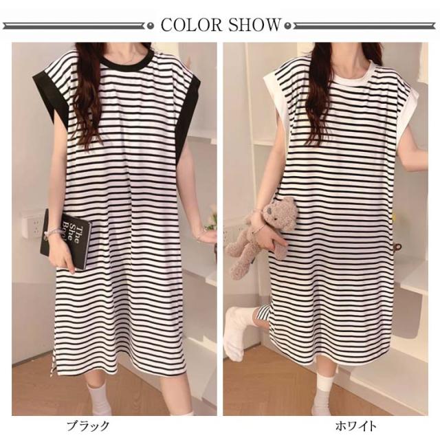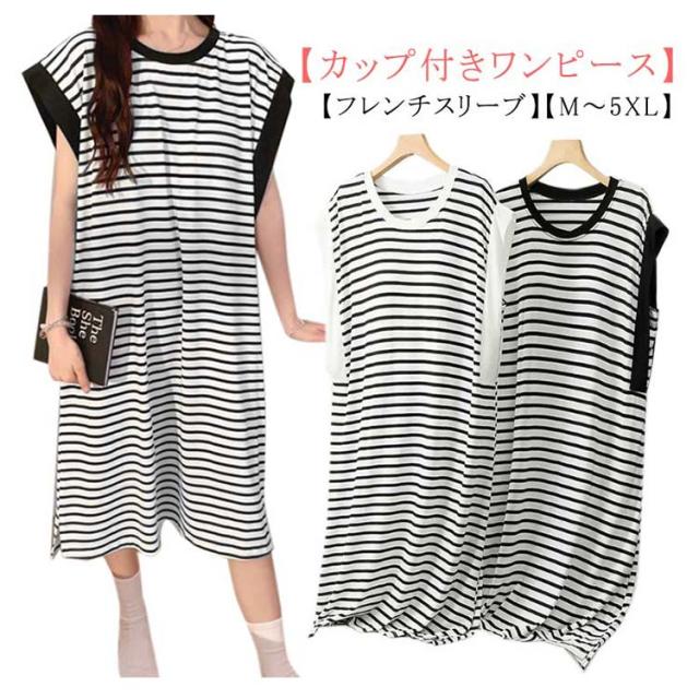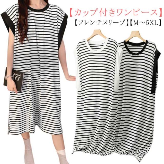 カップ付き ワンピース レディース ロング丈 ルームウェア 袖なし フレンチスリーブ 部屋着 パジャマ 春 夏 ナイトウェア 寝間着 肌着 ブラトップ ボーダー柄 モダール ストレッチ ゆったり 可愛い 大きいサイズ 無地 送料無料