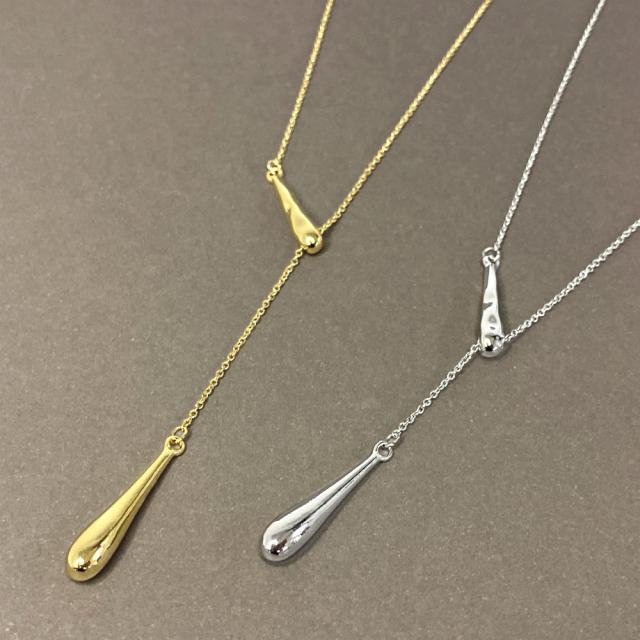 送料無料 ニュアンスドロップY字ロングネックレス しずく 涙型 雫型 チェーン レディース シルバー ゴールド