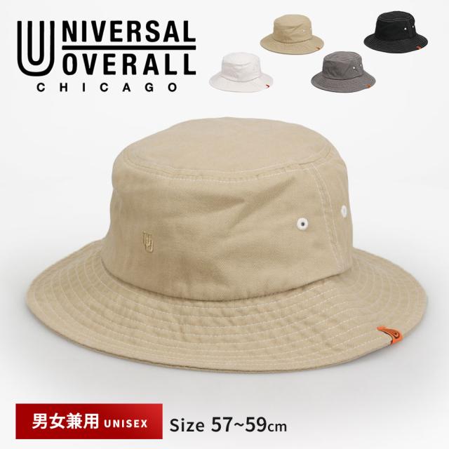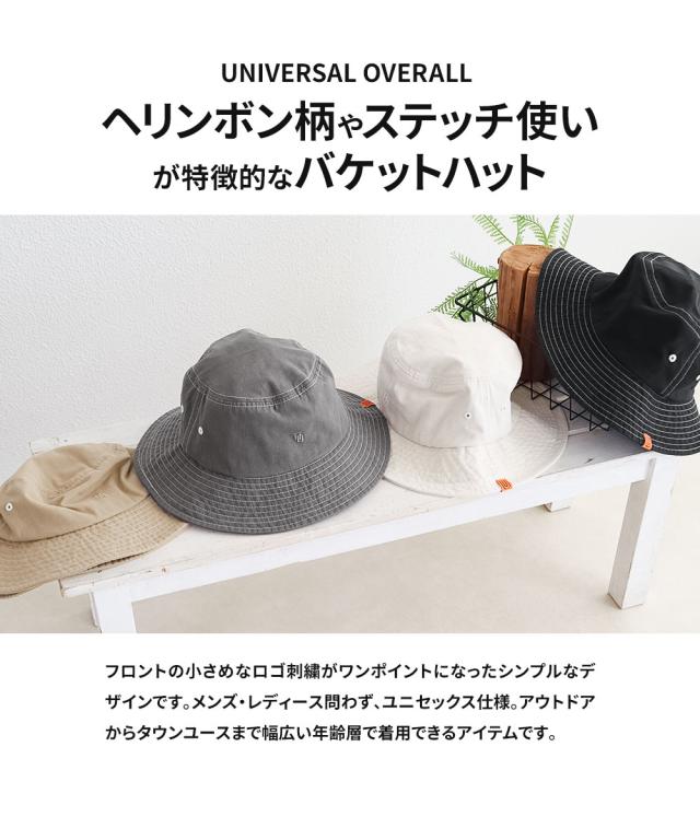 ユニバーサルオーバーオール UO ロゴ 刺繍 へリンボン柄 バケットハット メンズ アメカジ 帽子 レディース ブランド バケハ ハット メンズハット レディースハット 黒 ブラック アイボリー ベージュ グレー UNIVERSAL OVERALL DS1734