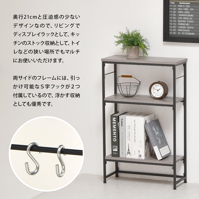 どこにでもフィット スリムラック 3段 幅50 奥行21 【送料無料】 薄型 スリム オープンラック オープンシェルフ コンパクト アイアン 可動棚 シンプル コンソールテーブル 玄関 ミニテーブル