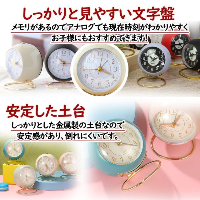 置き時計 アナログ かわいい おしゃれ 置時計 北欧 めざまし時計 目覚まし アラーム ナイトライト 電池式 静か ミニ 小さい リビング まるころ時計 アンティーク シック レトロ インテリア 雑貨 プレゼント 寝室 ベッド
