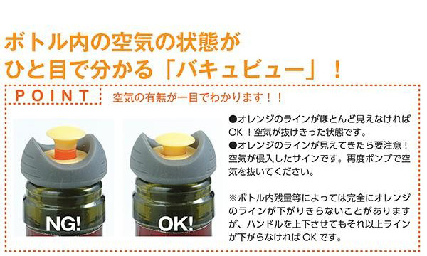 栓のオレンジのラインの幅が広がってきたら要注意!!空気が進入したサインですので再度ポンプで空気を抜いて下さい。