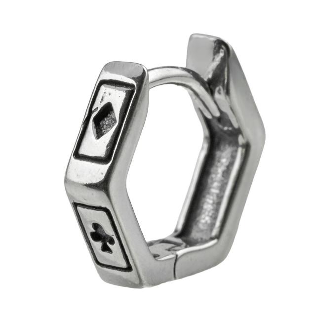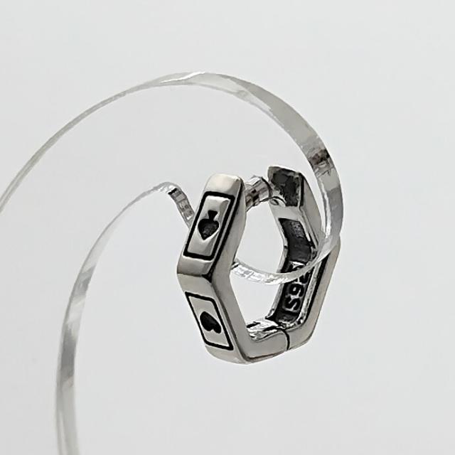 トランプ フープピアス メンズ レディース シルバー925 片耳用 六角形 リングピアス シンプル 細め マーク bae-0185