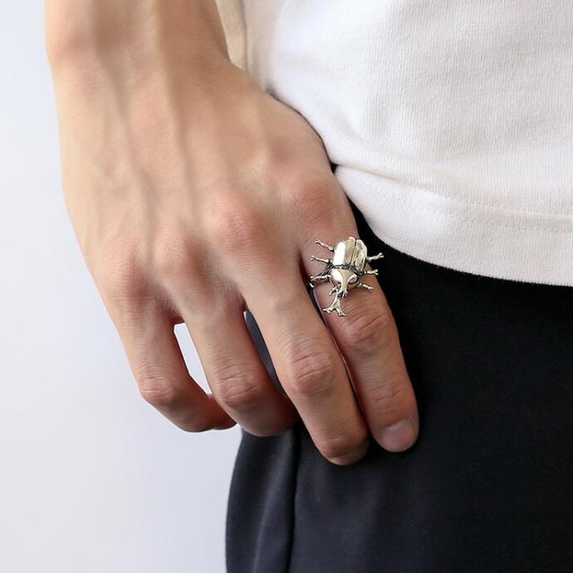 カブトムシを象ったインパクト抜群のリング。カブトムシは中抜きが施されているので見た目より軽い着け心地です。着けるとカブトムシが指を登っているように見える、昆虫好きやユニークなアクセ好きにはたまらないアイテムです。