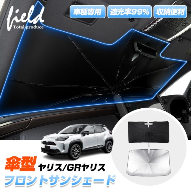▼車種専用 傘型サンシェード ヤリス/GRヤリス フロントシェード 車用パラソル サンシェード 収納袋付き 傘型 カーシェード 日よけシェード 遮光カーテン 遮光 断熱 UV紫外線カット 暑さ対策 キャンパー 仮眠 車中泊グッズ カー シェード yaris cross