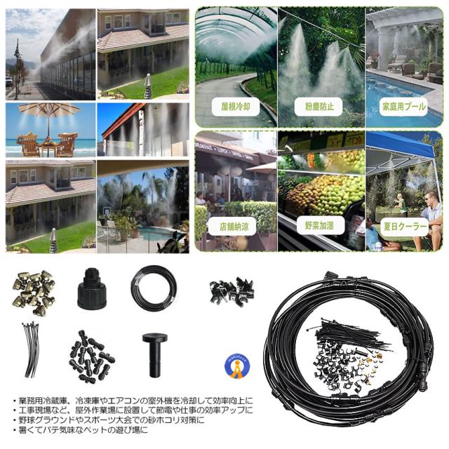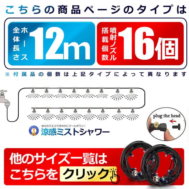 2個セット ミストシャワー 12mタイプ ノズル16個 ガーデニング 屋外用 散水 花壇 農業 庭園 屋上冷却 プール霧冷 スプリンクラー ホース 霧 涼感 HYOUKAN-12 s-kk2304-95a