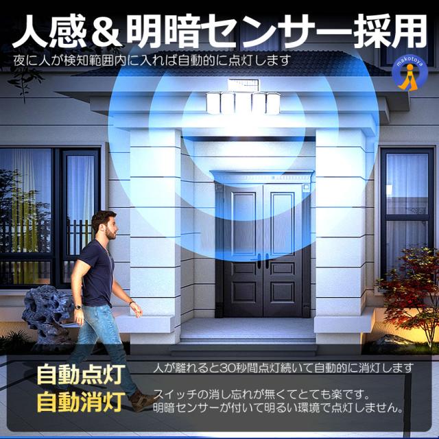 夜になると人が検知範囲内に入れば自動的に点灯します