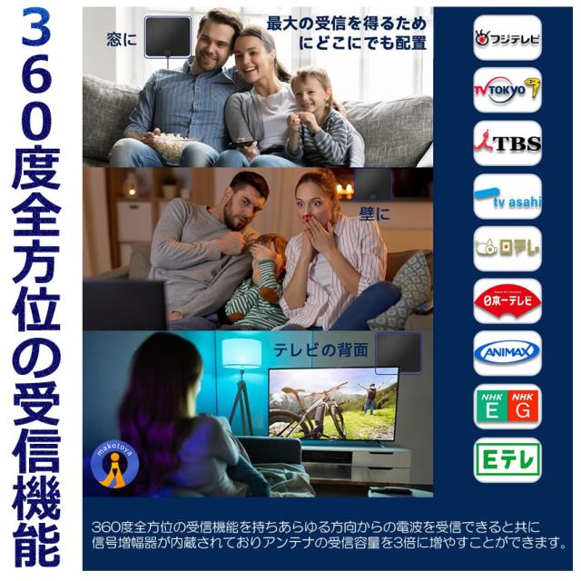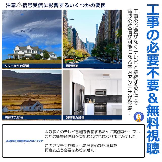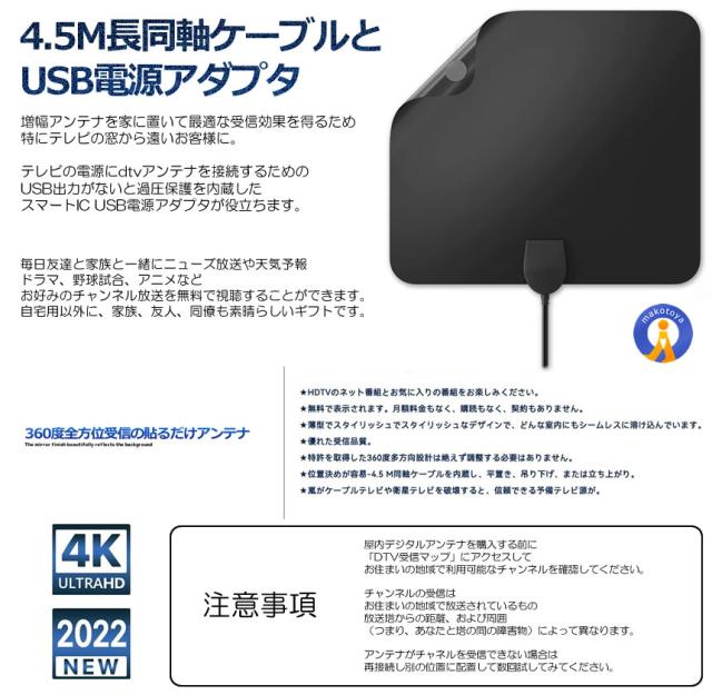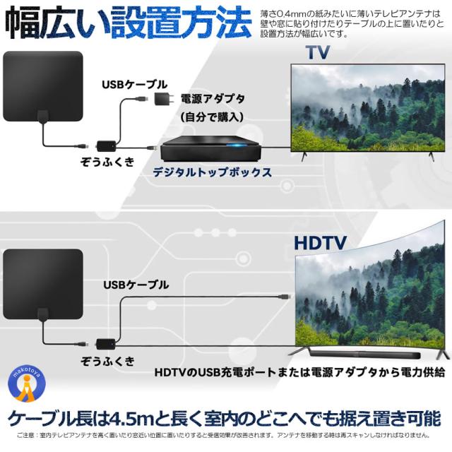 2個セット 室内アンテナ 貼る テレビアンテナ 360度 全方位受信 350KM 受信範囲 4K HDTV USB テレビ 地デジ 小型 軽量 簡単設置 高感度 360ZEANT s-kj2212-10a