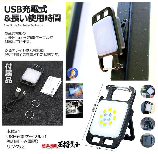 2個セット LEDライト 小型 充電式 マルチ カラビナ 栓抜き 作業灯 マグネット 防水 点灯 赤ライト 防水 懐中電灯 点滅 COB 投光器 登山 磁石ライト OUSHOU s-kj2212-31a