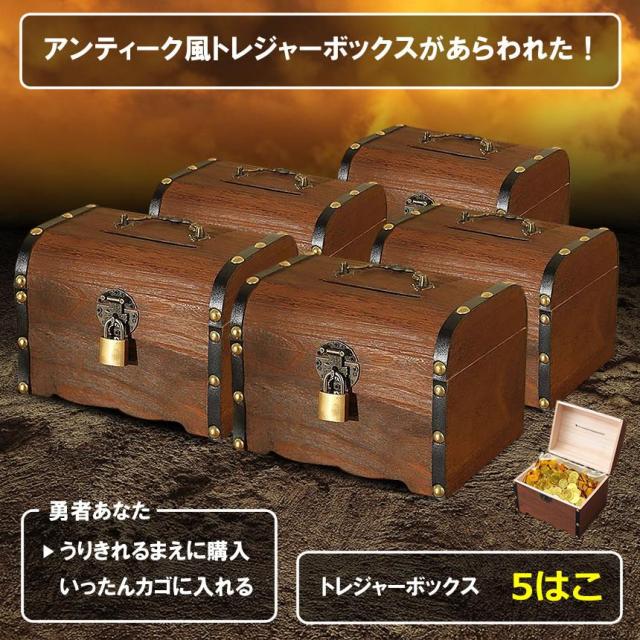 5個セット 宝箱 鍵付き アンティーク調 収納ケース トレジャーボックス インテリア 木製 貯金箱 収納箱 おもちゃ箱 南京錠付き レトロ 雑貨 小物入れ TOREBOX s-kj2301-20a