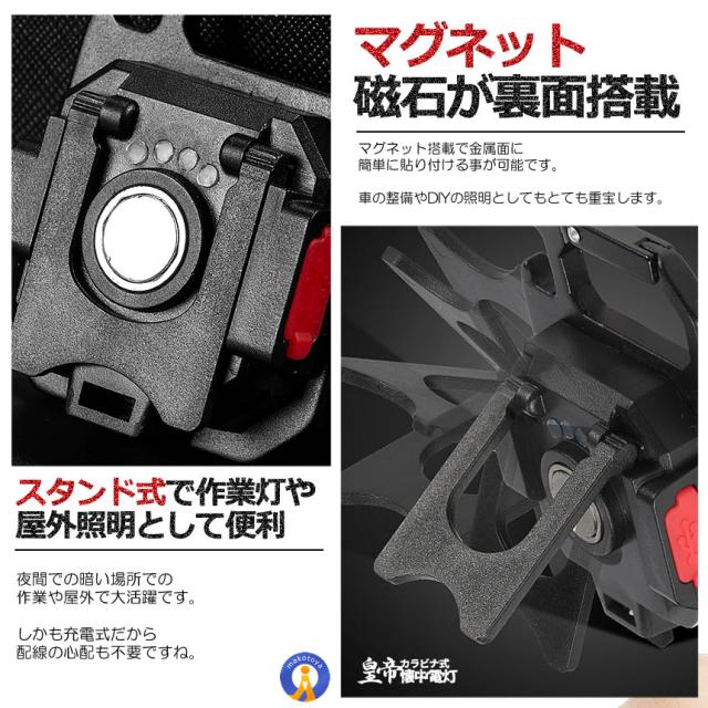 マグネット付き:ライトの背面には強力磁石が付いているので、金属物にしっかり固定てき