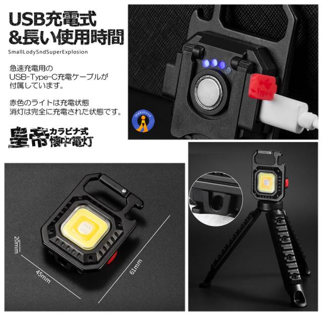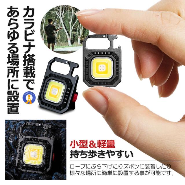 2個セット マルチLEDライト LED ライト 6点灯モード カラビナ式 磁石 缶切り付き USBケーブル付き 充電式 COB キーホルダー 懐中電灯 作業灯 投光器 KOUTEIKA s-kj2301-30a
