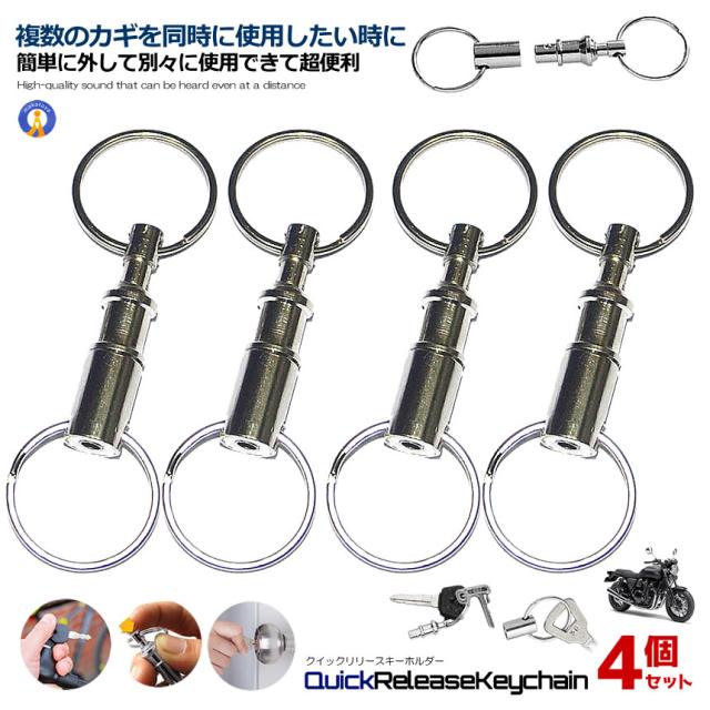 4個セット クイックリリースキーホルダー クイックリリース キーホルダー カギ 鍵 分割 分離 着脱式 簡単分離 簡単脱着 バイク 車 家 ボタン式 2-QUIRIKEY s-kj2302-21a
