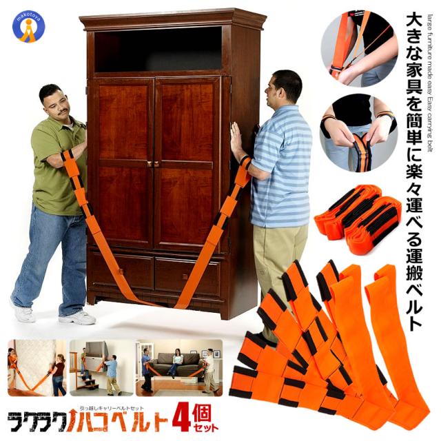 4個セット 引っ越し キャリーベルト 運搬 ベルト 家具移動 便利グッズ 家具 洗濯機 段ボール 荷物 背負い型 200kg サイズ調整 冷蔵庫 家具 2-HAKOBERUTO s-kk2302-47a