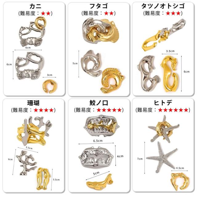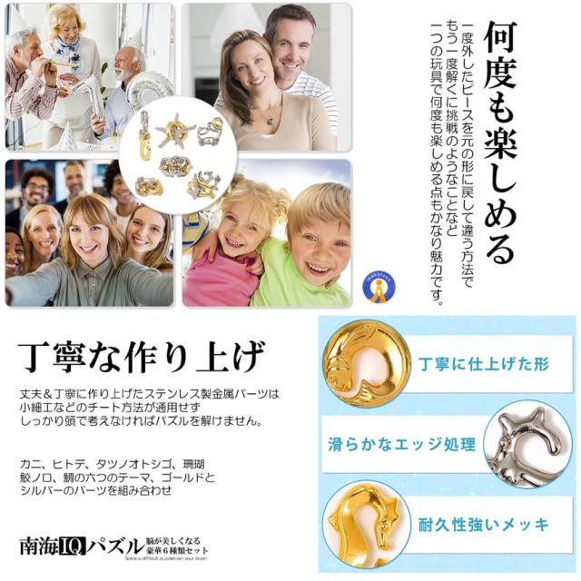 知恵の輪 6種類セット 脳が美しくなる IQ 南海パズル キャストパズル 立体パズル 脳トレ 謎解き 思考力 集中力 手先の運動 脳の運動 海モチーフ 6-NANKAIP s-kk2303-11a