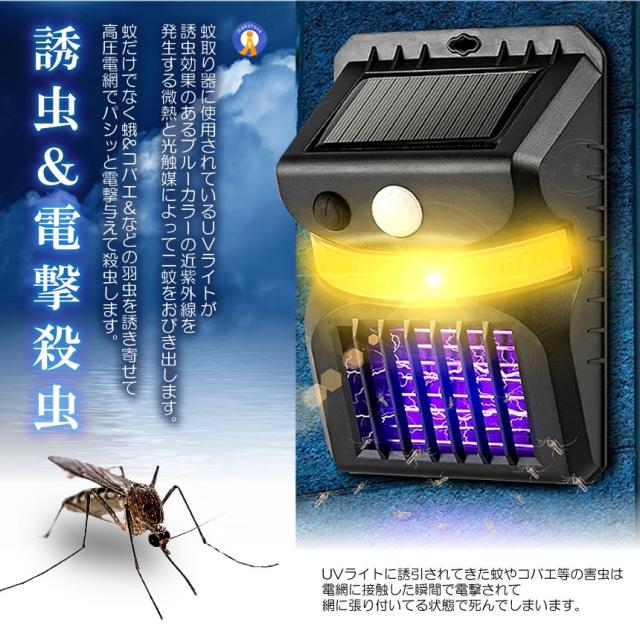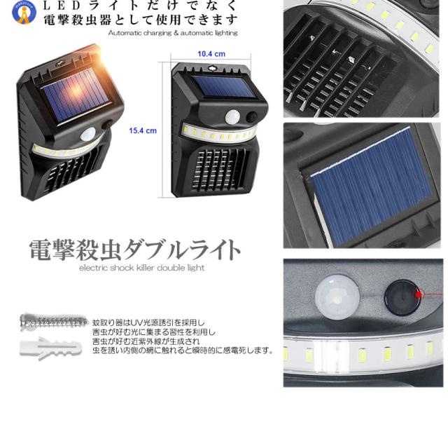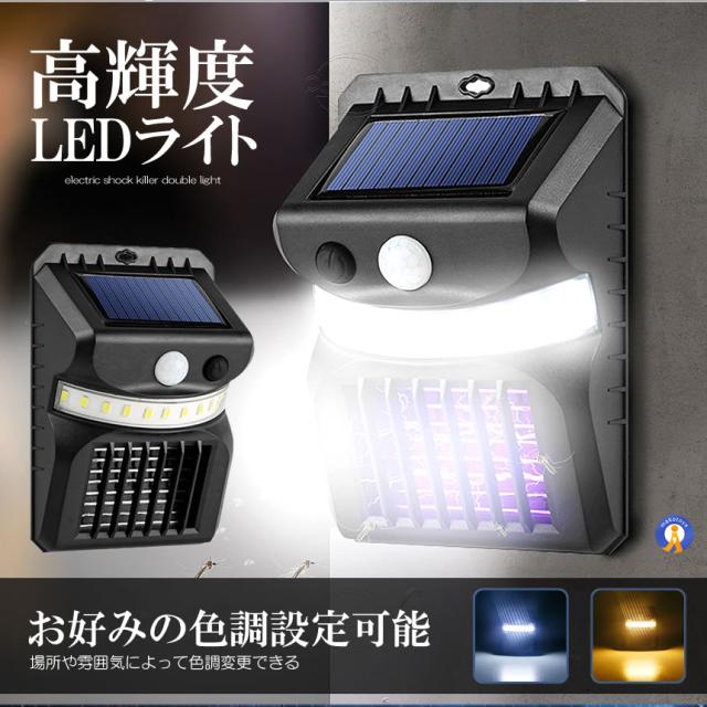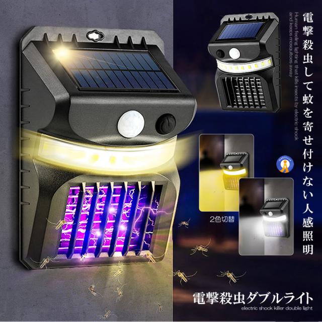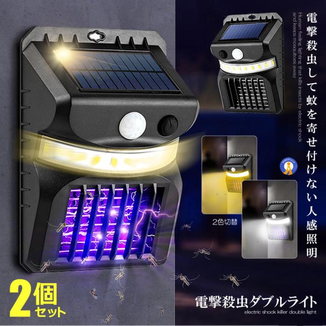 2個セット 電撃殺虫ライト ソーラーライト 人感センサー 光色変更 虫取り機 虫よけ 夏場 蚊取り器 捕虫器 誘蛾灯 屋外 照明 夜間 自動点灯 蚊対策 SIKIDEN s-kk2304-82a