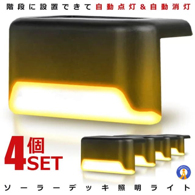 ソーラーデッキライト 4個セット 屋外 暖色 ガーデン 庭園灯 防水 階段ライト 自動点灯 消灯 LED 転倒防止 太陽光発電 防犯 夜間 照明 事故防止 4-DECKBRAT s-kh1216-12a