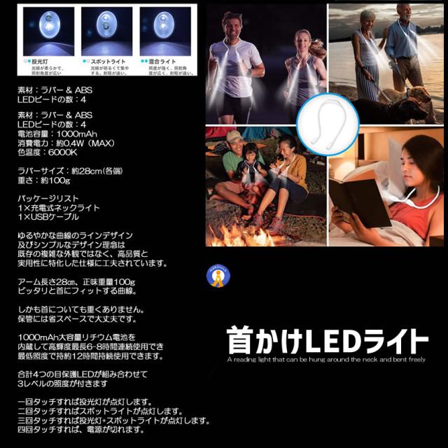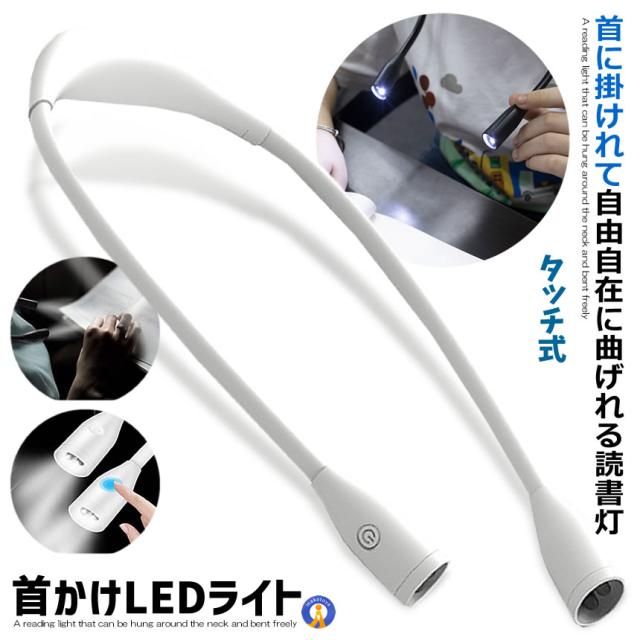 首かけライト ホワイト LED ネックライト 360度調整可能 自由自在 高輝度 アウトドア ランニング ウォーキング USB充電 タッチ式 KUBIRAIS-WH s-mh0721-15a