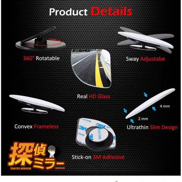 探偵ミラー 2個入り 車用 補助ミラー 360度 角度調節 扇形 死角解消 サブミラー 駐車 車中泊 運転 ミラー バックミラー カー用品 MIKITAN f0806-1a