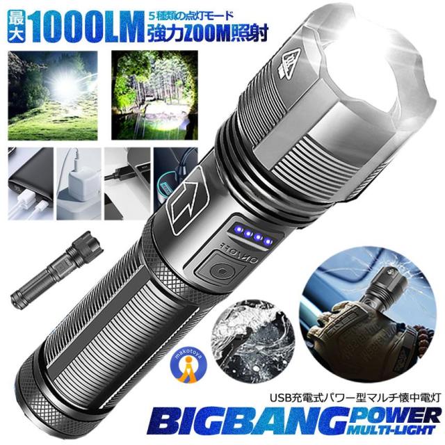 LED 懐中電灯 高スペック USB 充電式 LEDライト 1000lm 強力 ストロボ 脱出ハンマー 災害 防水 災害 震災 避難所 夜間 明るい LEDランプ BAKUKAI