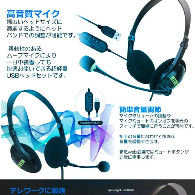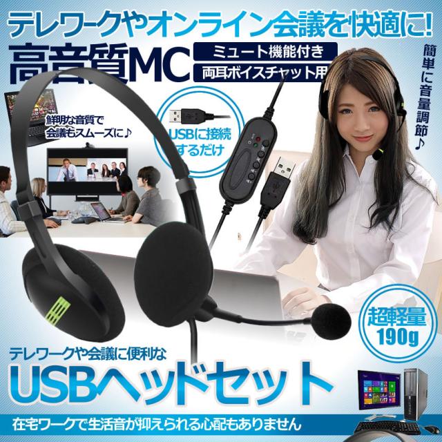usb ヘッドセット テレワーク 在宅ワーク テレビ会議 ミュート機能付き 高音質マイク 両耳ボイスチャット用 ヘッドフォン PC Windows Mac対応 USHEDSET s-mh1222-10a