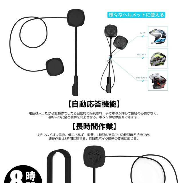 バイク用 Bluetooth 5 イヤホン マイク付き ヘルメット イヤホン 無線 bluetooth 5 ヘッドセット スピーカー 8時間連続 オートバイ 通話 音声 HELHON m-mh0213-50a