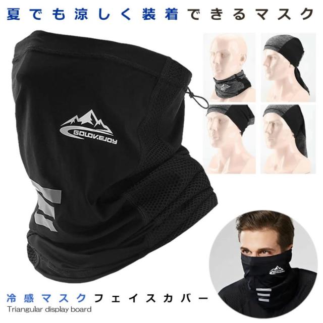 冷感マスク ブラック フェイスカバー ネックガード 夏 UVカット ゴルフウエア おしゃれ 男女兼用 紫外線対策 蒸れ防止 冷感繊維 REIMASU-BK kg0719-14a