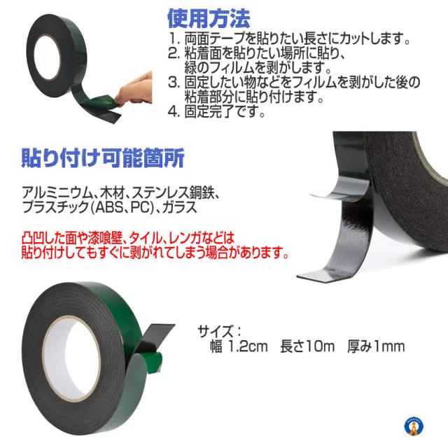 貼り付け例:車のエンブレム、収納ラック、車内装飾、工具の固定 など