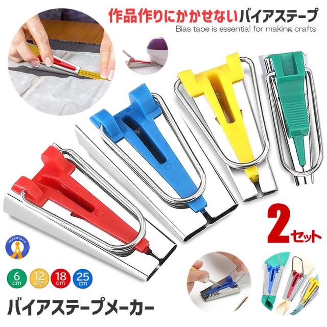 2個セット バイアステープメーカー 手芸 4サイズ かんたん作成 テープメーカー バイヤス 袖ぐり 衿ぐり6mm 12mm 18mm 25mm ソーイング P-TAPEM e0716-30a